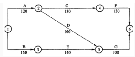 1.关键线路: ①→③→⑤→⑥(或B→E→G),计算工期为390d,按此计划可以按合同工期要求完工。