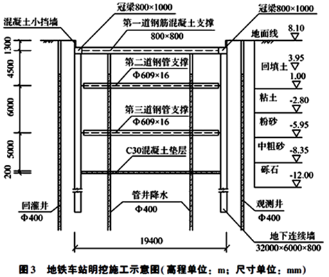 (3)开挖过程要对基坑本体及支护结构体系进行监控,发生异常情况时,应立即停止挖土,并应立即查清原因且采取措施,正常后方能继续挖土。