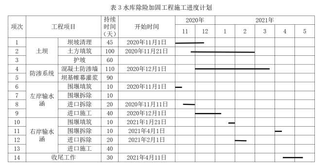 左岸输水涵围堰拆除的结束时间:2021 年 1 月 20 日;