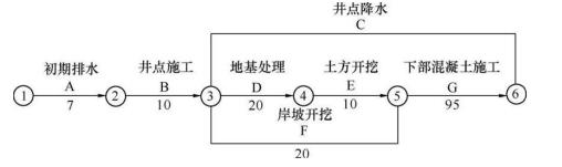 2.C 工作的持续时间应为 125 天。理由:井点降水工作应从基坑开挖到基坑全部回填完毕期间一直不停止,所以伴随地基处理、土方开挖、下部混凝土施工过程