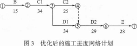 优化后的土石坝加固后续工作的施工进度网络计划如图3所示: