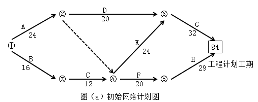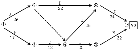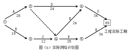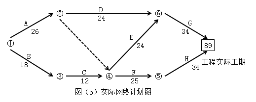 网络计划图(b)的关键路线是B→C→F→H或①→③→④→⑤→⑦。