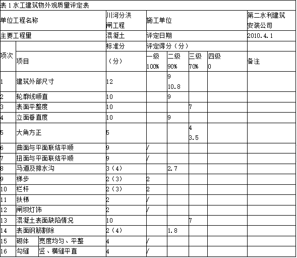 (3)工程外观质量得分率70%以上;