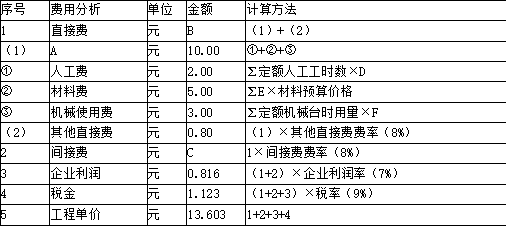 D代表人工预算单价