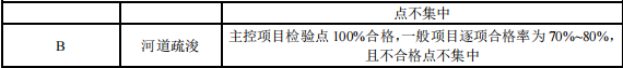 理由:B 单元为河道疏浚,属于不划分工序的单元工程,对于河道疏浚单元工程,合格标准为主控项目检验点 100%合格,一般项目检验点合格率不低于 90%,且不合格不集中分布。一般项目逐项合格率为 70%~80%低于 90%,故为不合格。