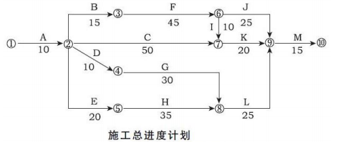 <3>.关键线路:①→②→③→⑥→⑦→⑨→⑩(或A→B→F→I→K→M);总工期:115天。