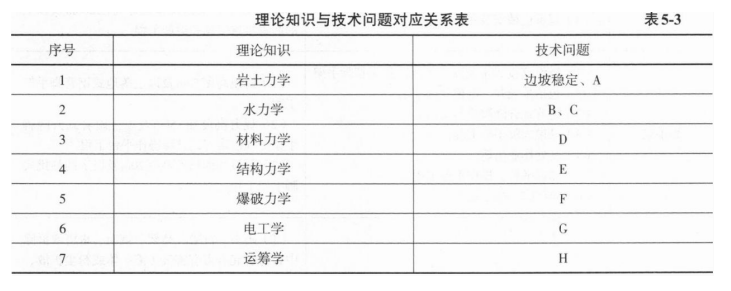 2.理论知识与技术问题对应关系表中字母所代表的技术问题如下:
