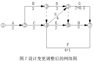 2.施工单位的工期索赔要求不正确。把非承包人责任造成的工作增加或者工作时间延长计入后的网络图如图 7 所示。