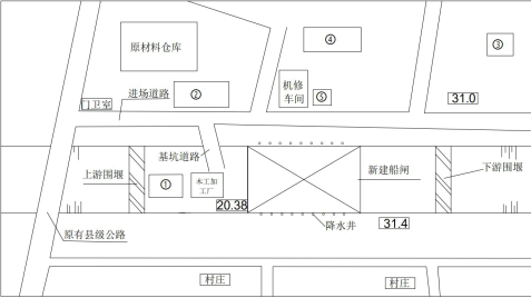 2.①为钢筋加工厂;②为混凝土拌合系统;③为油料库;④为办公生活区;⑤为零星材料仓库。