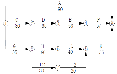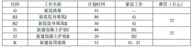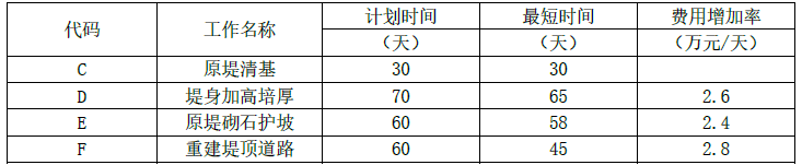 (2)①关键线路①→②→③→④→⑨:2.4×2+2.6×5+2.8×3=26.2万元,