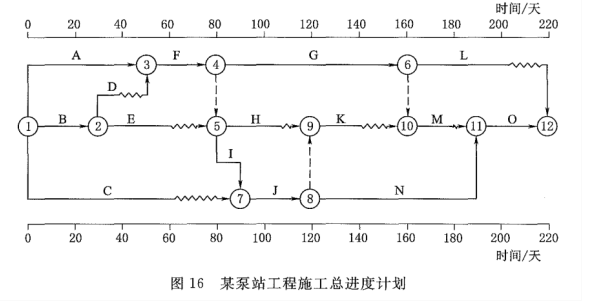 (2)工作G正常,对工期无影响;工作H提前10天,为非关键工作,对工期无影响;工作I延误10天,是关键工作,造成工期延长10天。