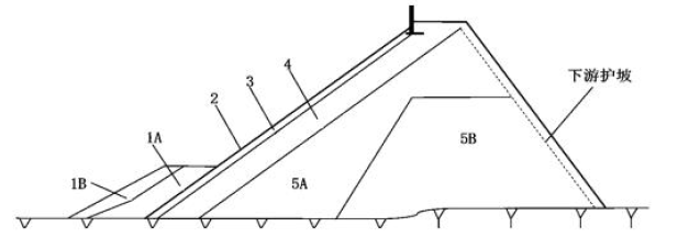 1.(1)2:混凝土面板;3:垫层区;4:过渡区;5A:主堆石区;5B:下游堆石区(次堆石区)。
