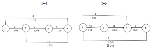 (2)E工作实际持续时间为180d天;不影响计划工期,因为E工作拖延时间为30d为超过E工作的总(自由)时差70d