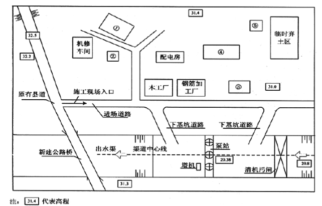 施工现场入口、原料库、配电房、基坑边沿(或下基坑道路)、塔机、脚手架等。