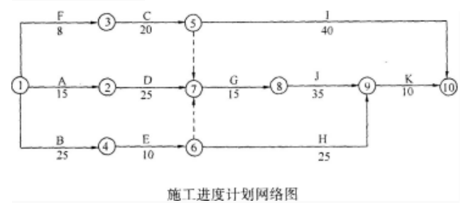 B工作延误10天,此时经计算总工期为105天,与原工期相比延误5天,关键线路变为B、E、G、J、K。此时J工作位于关键路线上,将其工作时间由35天压缩为30天,总工期仍为100天,所以此措施可行。