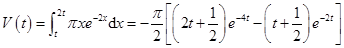 则V′(t)=-πte-2t(1-4e-2t),令V′(t)=0,可得t=ln2。