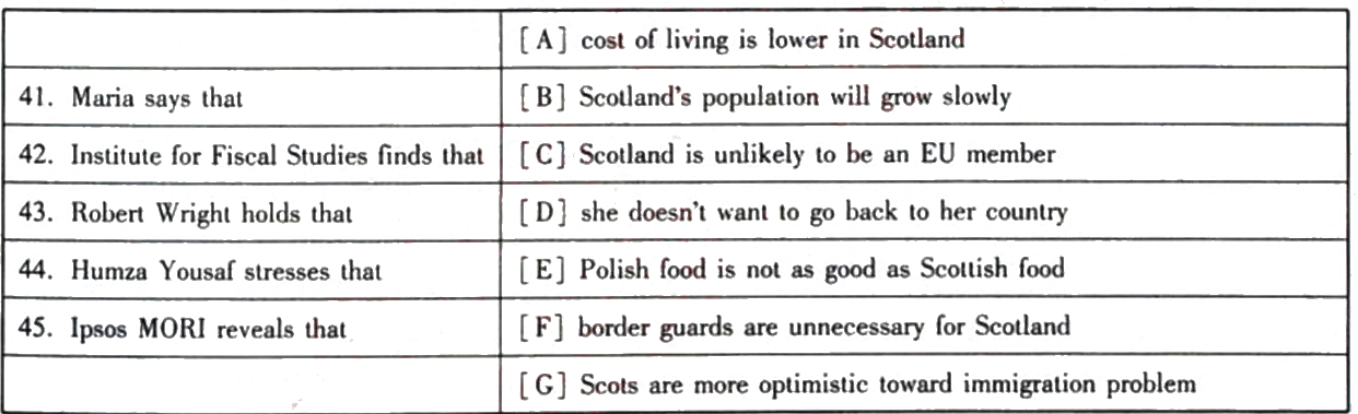 At the Polish Club in Glasgow,Scots and Poles socialize easily.Many of the customers in its restaurant are Scotlish,eager to try Polish food before going there on holiday,says 16-year-old Mari-a,who moved to Scotland eight years ago and works in the club part-time as a waitress.She,by contrast,has no desire to retum.Scotland's welcome has been warm.Its govemmenl wants it to be warmer still.Scotland's leaders h8ve long mainLained that they need immigrants more ihan the rest of Britain does,both to boost the country's sparse population and to alleviate skiUs shortages.Between 1981 and 2003 Scotland's population declined.Most of Lhe population growth that Scodand has seen since then has been thanks to migrants,largely from outside Britain.Scots are having fewer children and ageing more rapidly than other Britons:on current trends the Scottish population will swell by just 4%by 2062 compared with 23qo for Britain as a whole,according to the Institute for Fiscal Studies.The only group expected to grow is the oldest one.If Scots vote for independence,a nationalist govemment promises to encourage immigraLion.It would offer incentives for migrants willing to move to far-flung spoLs.It would ease the nationwide requirement that immigrants must earn a particular salary to gain residency to reflect the lower cost of living there.Students would be able to stay after graduating and work for several years.Turning these aspirations into a workable immigraLion policy would be tricky.Though anxious to join the EU,Scotland's government is less keen on the Schengen travel zone,which allows non-EU ciUzens to travel on a single visa.It wants to remain part of the Common Travel Area,like the Republic oflreland,which imposes minimal border controls.Robert Wright,an economist at Strathclyde Uruversity who has advised the government on demography,is unconvinced this pick-and-mix approach to EU membership would work.And this would be one of many strains on Scotland's relationship with the rest of Britain.Different immigration policies in two countries that share a land border could result in stricter controls,including passport checks between them.Humza Yousaf,Scodand's minister for extemal affairs and international development,denies they would be necessary.Scotland would have border management,he stresses,not border guards.But some English politicians may disagree.If the nationalists lose the independence vote,London could be minded to devolve further powers to Scodand,perhaps including over immigration.Mr Wnght argues there is scope for more regional diversity.In Canada,immigraLion requirements are eased if people agree to live in less popular provinces.Scots are somewhat less resisLant to immigration Lhan other Britons.Some 58%want fewer migrants in ScoLland.Fully 75qo of English and Welsh people want fewer in their countries,says a report by the Migration Observatory at the University of Oxford.And Scots are more sanguine.Just 21%identify immigration as one of Lhe most important issues facing the country,lower than the British average of 33%,according to Ipsos MORI,a pollster.Thal equanimity stems in part from the fact that migrants in Scotland are not especially common.More than half of its"foreign"residents come from other parts of Britain.Attitudes to immigrants tend to be softest where newcomers are scarce,as in Scotland,or very numerous,as in London.They harden in between those extremes.In eastern England,for example,where eastern Europeans are increasingly numerous,38%fume about immigration.If Scotland manages to entice more foreigners,it will enter this difficult middle territory.The warm Scottish welcome could cool.