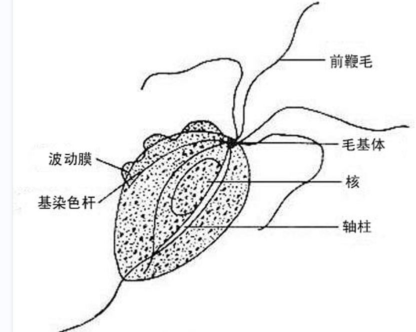 A1/A2型题 患者,女,出现稀薄的泡沫状白带增多及外阴瘙痒,行阴道分泌物涂片检查中的生理盐水悬滴法在低倍显微镜下寻找到以下病原体,该患者可能的诊断为( )