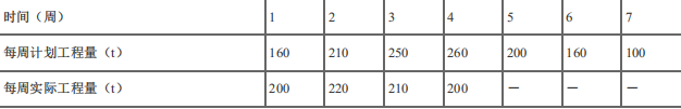 已知某钢筋工程每周计划完成的工程量和第1~4周实际完成的工程量见下表,则截至第4周末工程实际进展点落实在计划S曲线的(