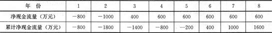 某投资方案的净现金流量及累计净现金流量如下表所示,则该投资方案的静态投资回收期是( )年。