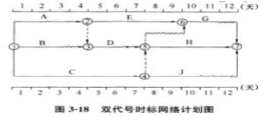某工程双代号时标网络计划如图3-18 所示,因工作B、D、G 和J 共用一台施工机械并必须顺序施工,在合理安排下,该施工