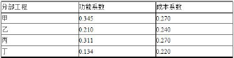 采用强制确定法对某工程四个分部工程进行价值工程对象的选择,各分部工程的功能系数和成本系数见下表。