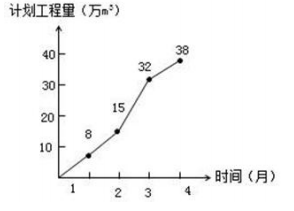 某分项工程月计划工程量累计曲线(单位:万m3)如下图所示,该工程1~4月份实际工程量分别为6万m3、7万m3、8万m3和