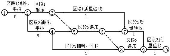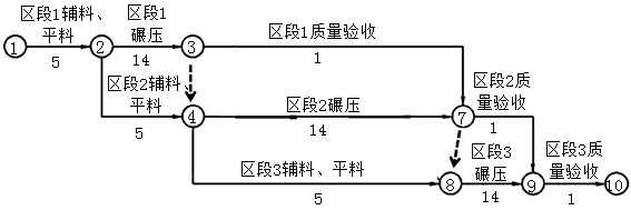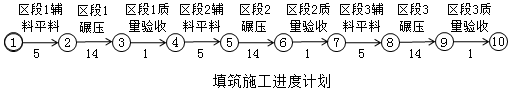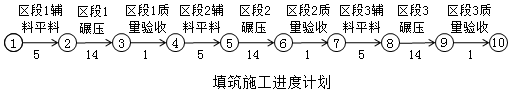 案例题 某堤防工程填筑,堤防长度为1.5km,填筑工程量为9万m3,计划分成3个区段施工。填筑工期为60天。每个工序只有