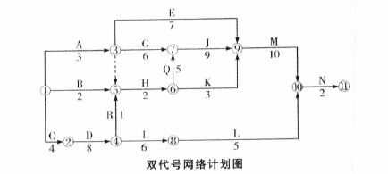 案例题 某项工程项目分解后,根据工作间的逻辑关系绘制的双代号网络计划如下图(单位:天)所示。工程实施到第12天末进行检查