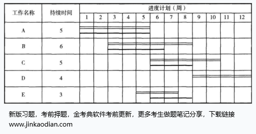 某工程项目的计划进度和截至第8周周末的实际进度如下图所示(双线条表示计划进度,粗实线表示实际进度),如果各项工作均为匀速