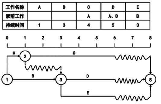 多选题 已知各工作间的逻辑关系如图所示,依最早开始时间所绘制的双代号时标网络图,该图的绘图错误有( )。
