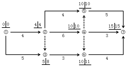 某工程双代号网络计划如下图所示,图中已标出每个节点的最早时间和最迟时间,该计划表明( )。
