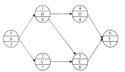 某工程的网络计划如下图所示(时间单位:d),图中工作B和E之间、工作C和E之间的时间间隔分别是()d。