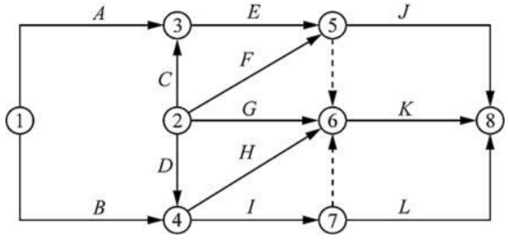 某单位工程双代号网络计划如图10-1-2所示,图中错误有()。