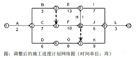 3.(1)重新绘制调整后的施工进度计划网络图如下图所示: