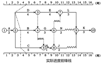 1 、 (1)实际进度前锋线如下图所示。