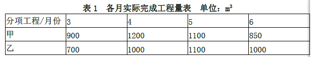 【4】 6 月份承包商完成工程的工程款: 甲分项工程(4050-4500)/4500=-10%,故结算价不需要调整。 则甲分项工程 6 月份清单合价:850×0.124=105.40(万元) 乙分项工程(3800-3200)/3200=18.75%,故结算价需调整。 调价部分清单合价: