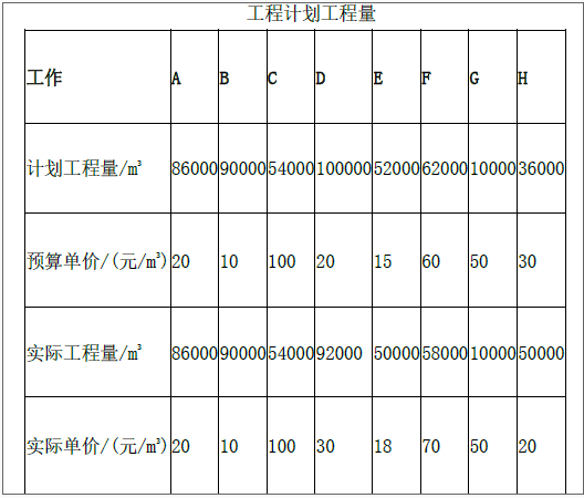 案例题 某水生态工程,合同工期20 个月,合同开工日期是2019 年1 月。施工单位进场后,编制了时标网络计划(下图)和工程计划工程量(下表),监理机构审核批准了该计划。假设每项工作施工期内施工强度相等。