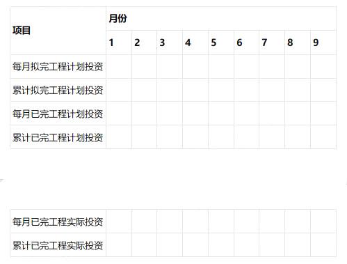 【问题】 1.计算该工程每月拟完工程计划投资、累计拟完工程计划投资、每月已完工程计划投资、累计巳完工程计划投资、 每月已完工程实际投资、累计已完工程实际投资,计算结果填人下表中。