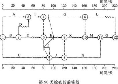 第90天检查时,工作G正常,对总工期无影响;工作H超前10天,但不是关键工作,所以对总工期无影响;工作I拖后10天,工作I是关键工作,所以会造成总工期延长10天。最终会对总工期造成延长10天的影响。