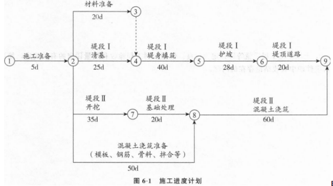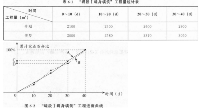 (1)“堤段Ⅰ堤身填筑”工程进度曲线中,A代表的是计划进度曲线,B代表的是实际进度曲线。