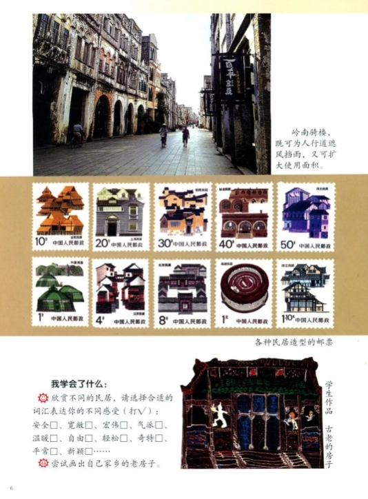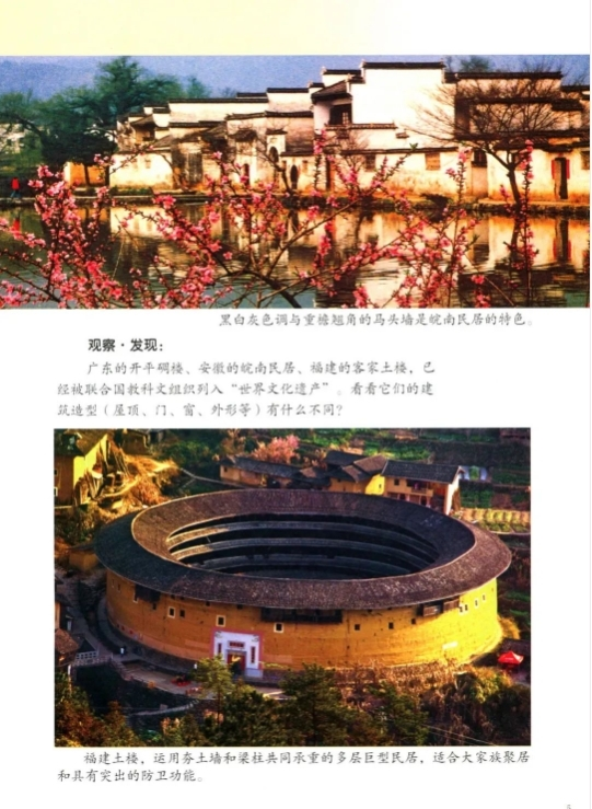 ①知道不同地区民居的不同特点,欣赏传统民居作品。