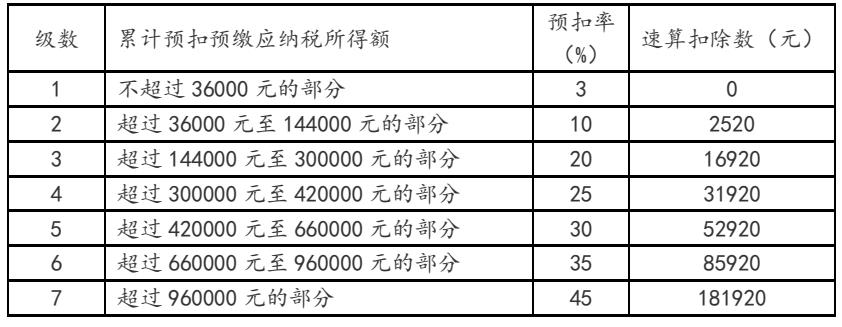 (居民个人工资、薪金所得预扣预缴适用,同综合所得汇算清缴)