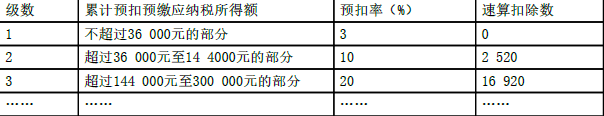 个人所得税预扣率表