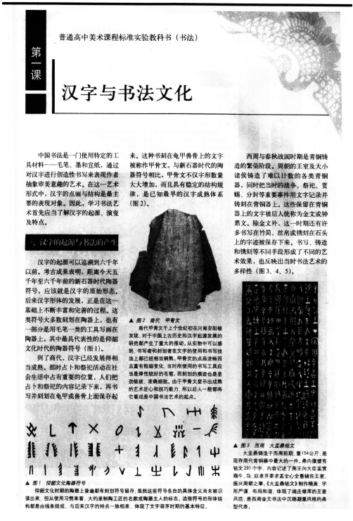 知识与技能:了解、熟悉汉字起源和书法产生的过程及书法在中国传统文化中的地位。