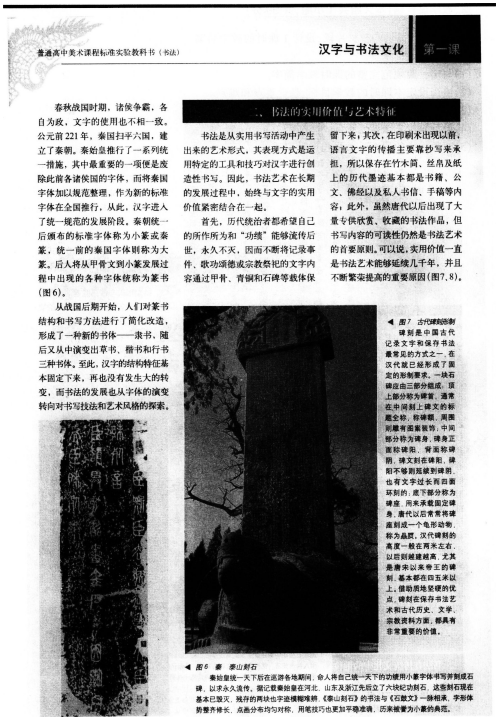 出示几件石刻拓片、木刻帖和墨迹,请同学辨认,讲述书法实用价值。