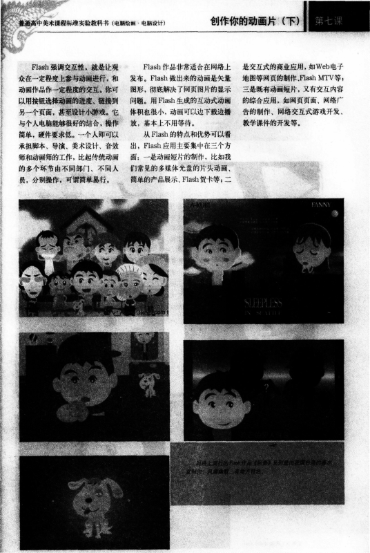 教师总结:多媒体光盘的片头动画、简单的产品展示、网页贺卡、交互式的网页、MTV、小游戏等。