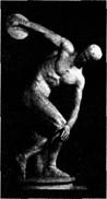 A A.取材于希腊的现实生活中的体育竞技活动 B B.雕塑的重心落在左腿上 C C.被认为是“空间中凝固的永恒” D D.古典时期的作品