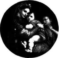 (2)画中圣母形象的完美得益于画家对意大利民间妇女美好形象的敏锐洞察力。为展示圣母的亲子之情,作者布局极其精心。三个形象亲密无间,玛利亚抱紧儿子,低眉斜视着画外,展现一种女性的妩媚,这一姿态与表情,使人油然而生对美好生活的联想。双手合掌的约翰把一根拐杖挟在左手肘里,预示耶稣将以牧师的身份走向人间。