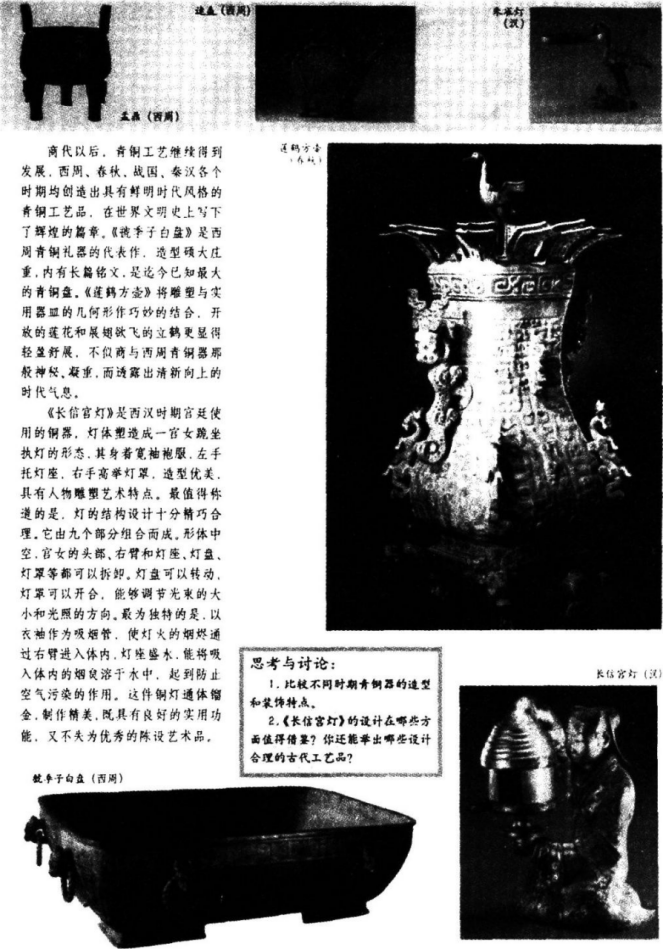教师简要介绍中国古代工艺美术的发展历史,提出问题: